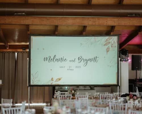 Proyección de vídeos, fotos o presentaciones mediante pantallas LED, monitores profesionales o proyectores. Ideal para mostrar vídeos sorpresa o discursos.